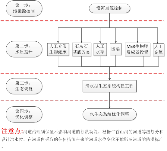 針對(duì)河道現(xiàn)狀和治理目標(biāo),中科水治理將牛首山河道治理分為三步走!